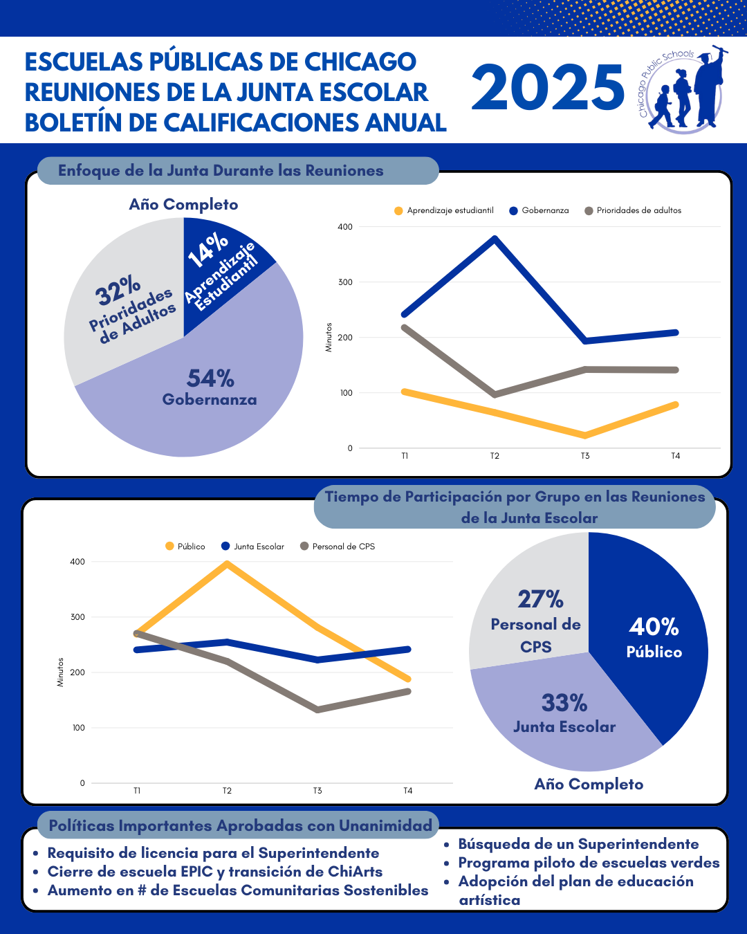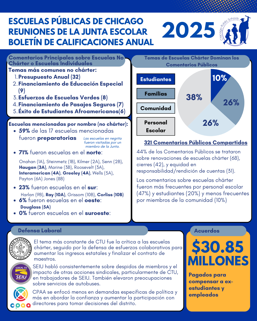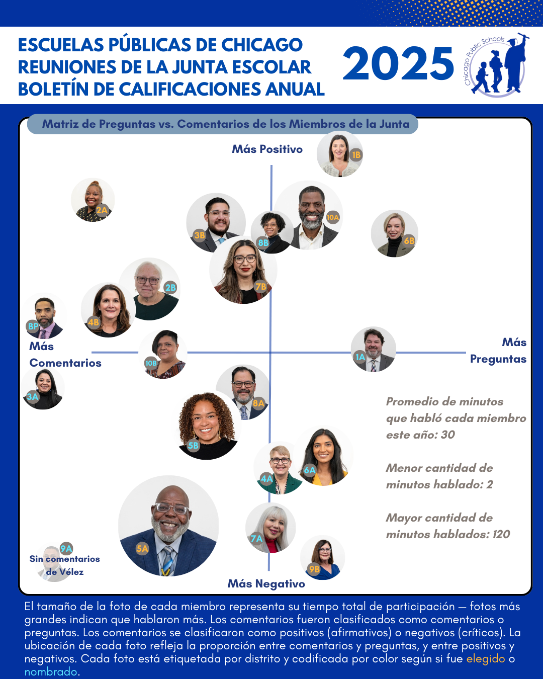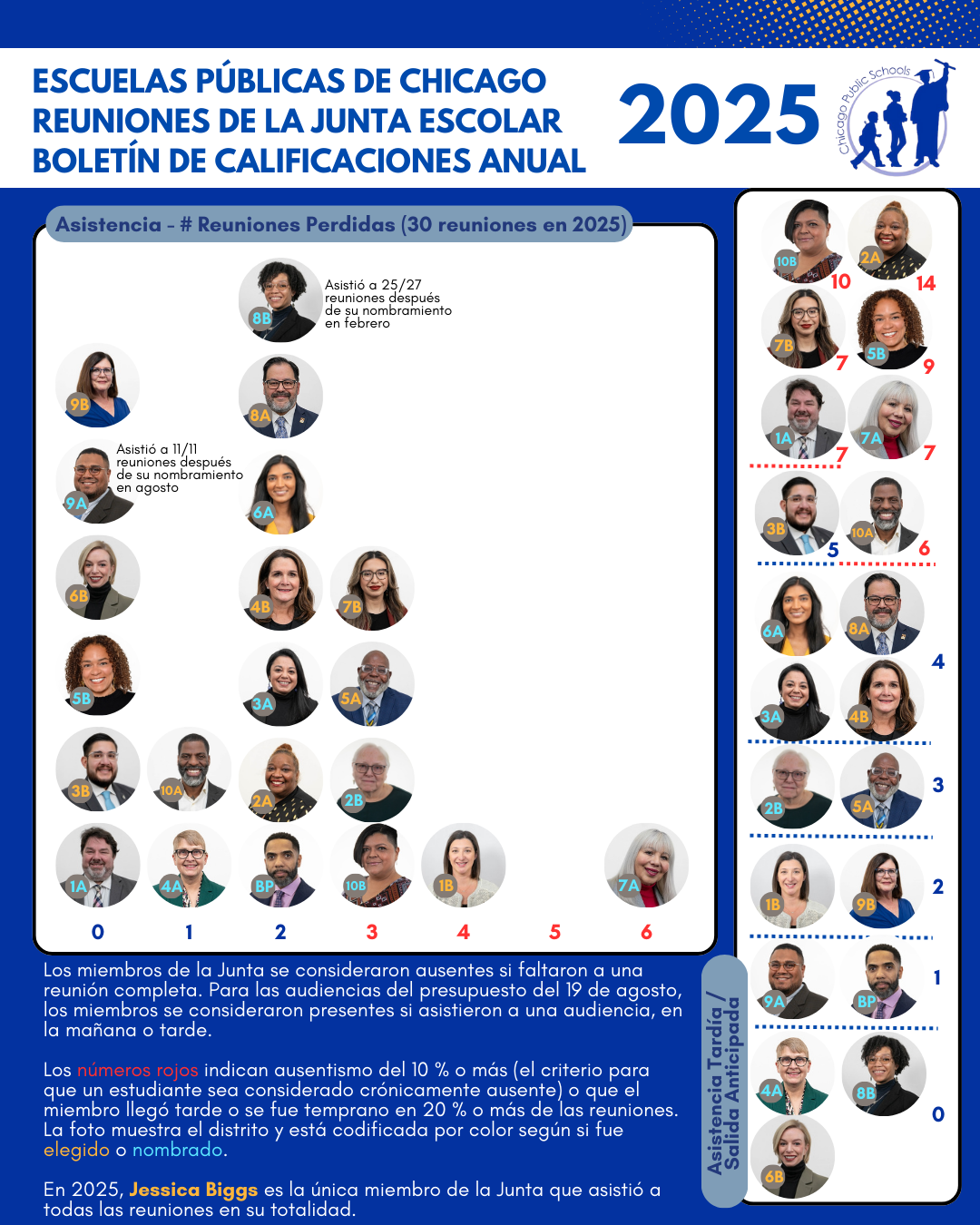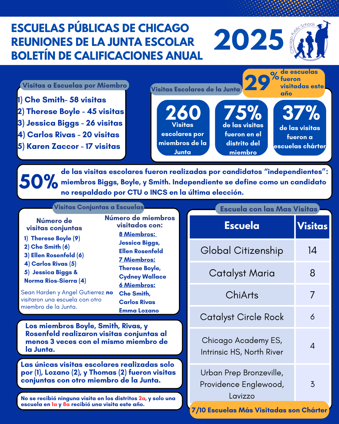 Abajo: análisis de visitas escolares de miembros de la Junta de Educación de Chicago.