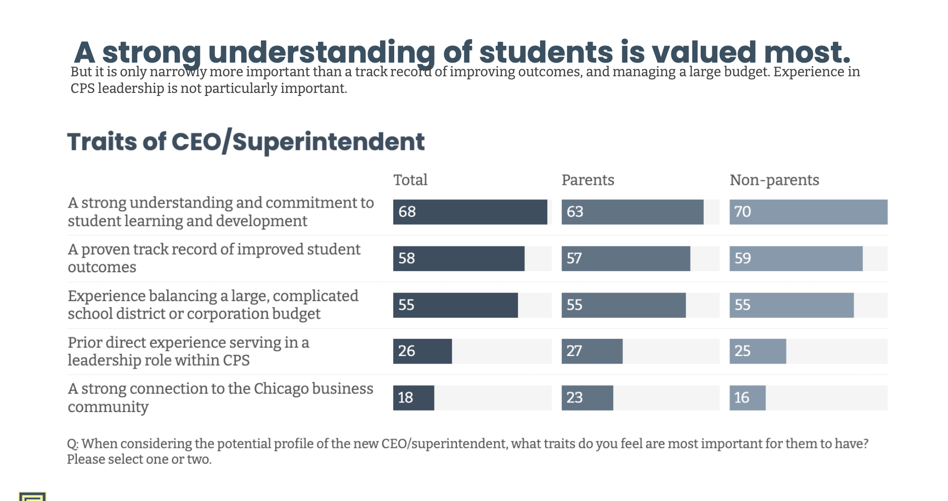 On the next leader of CPS, voters want an educator with a track record of improving student outcomes, but Chicago-specific experience isn't a must.